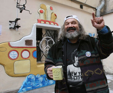 Коля Васин на открытии барельефа «Желтая подводная лодка» на стене Музея группы The Beatles