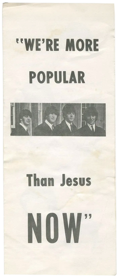 В 1966 году The Beatles буквально «отменили» на консервативном юге США в самом что ни на есть современном смысле этого слова: их пластинки публично сжигали в кострах, их концерты в рамках американского тура пикетировали члены ку-клукс-клана, толпу поклонников группы пытались поджечь фейерверками — ну и так далее. Все из-за интервью Леннона, где тот сказал, что «“Битлз” уже популярнее Иисуса Христа». Довольно скоро Джон записал извинительное интервью, тоже абсолютно современное: на записи ему очевидно некомфортно, но он долго и старательно объясняет, что имелось в виду не превосходство рок-н-ролла над христианством, а меняющиеся вкусы молодежи («если бы вместо “Битлз” я упомянул телевидение, никто бы и глазом не повел»). История привела к тому, что упомянутый тур стал последним в истории группы, которая сосредоточила все усилия на студийной работе.