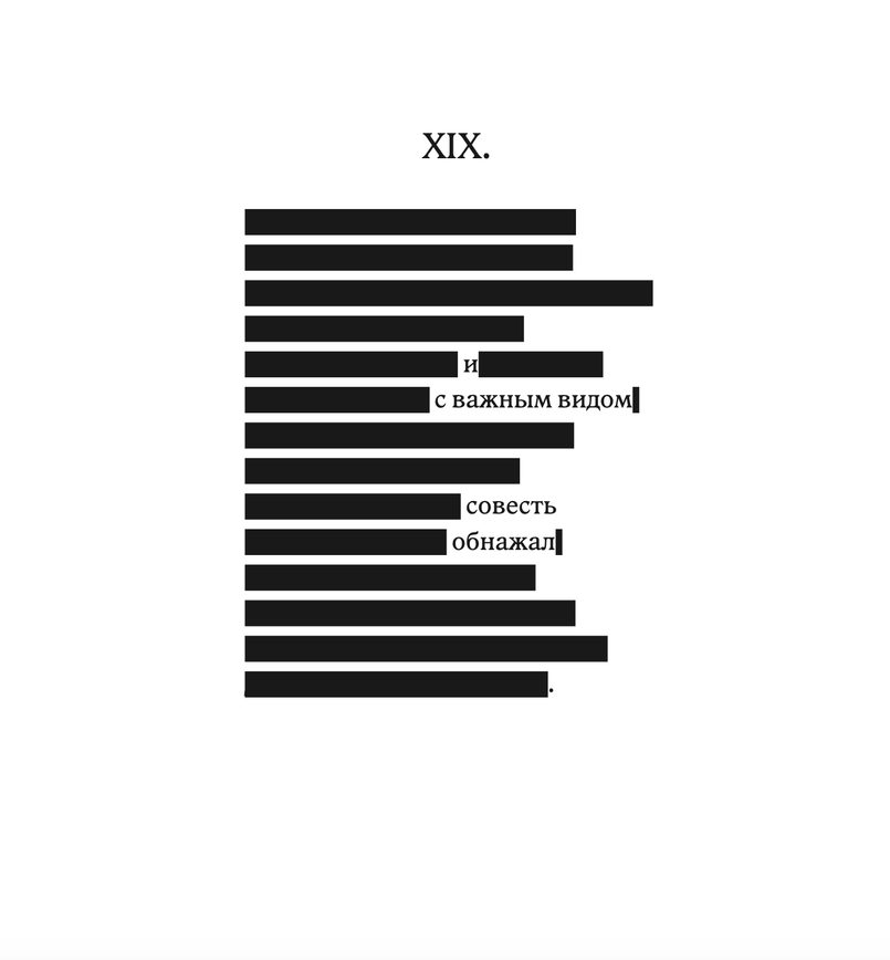 Александр Пушкин, Синий Карандаш «Евгений Онегин. Блэкаут»