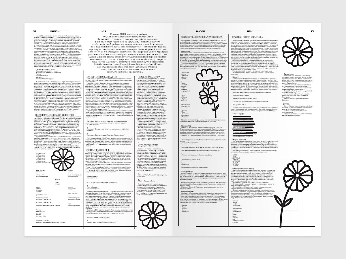 — утверждает Максим, — и позднее продолжает его хранить«. Бумажное издание имеет ностальгическую ценность — Мамлыга рассказывает, как читатели фотографируются с газетами, вспоминают, что их читали родители. Тем важнее оформление «Билли» — например, художник Синий Карандаш разбросал по своему эссе цветы, а биолог и иллюстратор Ольга Посух «нарисовала для последней полосы очень милый книжный комикс». Главное, что газета — это материальный объект, одновременно недорогой в производстве и более эффективный как «способ для аудитории поддержать нас рублем», чем платформы монетизации контента вроде Boosty. Пять полос «Билли» из тридцати шести отданы под рекламу, около трети тиража была бесплатно направлена в книжные. Остальные экземпляры команда газеты продает самостоятельно или в тех магазинах, где первая поставка уже закончилась, — в магазине «Все свободны», например, номер стоит 300 рублей.