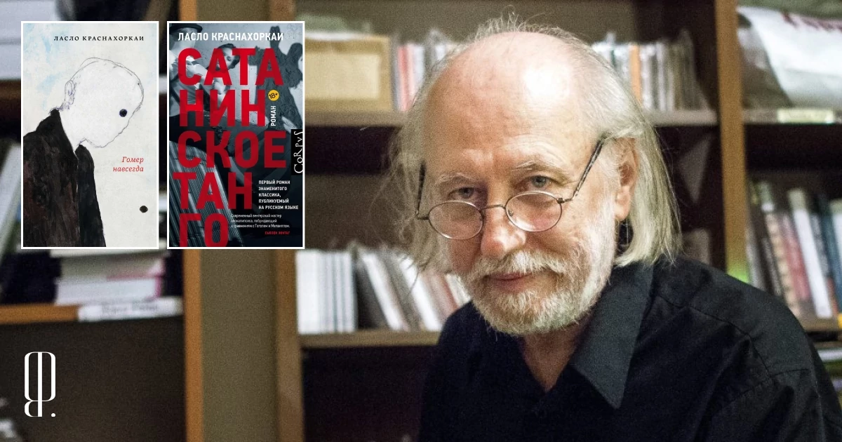 Роман «Сатанинское танго» 1985 года, его первая известная книга, выстроен буквально как танго: шесть шагов вперед, а потом шесть шагов назад. Если вы взглянете на оглавление, вы увидите, что главы так и называются — «Шаг», а само оглавление соответственно — «Порядок танца». «То, что нам видится позади, то скорее еще впереди», — печально говорит один из главных персонажей. Завязка романа начинается с возвращения в маленькую деревушку героя по имени Иримиаш (венгерский вариант библейского Иеремии), который как будто приходит в нее из мира мертвецов — в то самое время, как другие герои пытаются из деревни сбежать. Мир живых — это бесконечное путешествие туда и обратно, невозможность вырваться, когда танцуешь буквально стоя в кругу, как в гоголевском «Вие» (отсылка к Гоголю тоже неслучайна — единственным современным автором, способным создать текст, соразмерный «Мертвыми душам» Гоголя, называл Краснахоркаи другой великий писатель ХХ века, В.Г. Зебальд, а любимый аутфит героев Краснахоркаи — рваная шинель). Очевидно, что конца у такого танца, который не прекращается даже со смертью, быть не может. Сюжет романа у Краснахоркаи больше похож на ленту Мебиуса: это движение бесконечно, сюжет замыкается в самом себе.