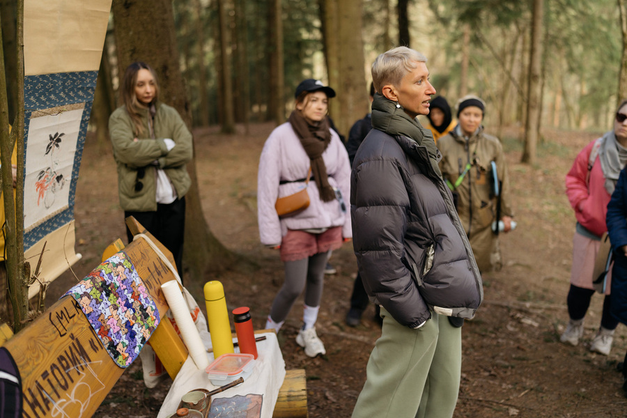Или спозаранку налить кофе в термос bobber и отправиться на прогулку в лес. Для Reading Camp куратор и автор проекта «Лес» Нина Гомиашвили вместе с лесотерапевтом, автором проекта о slow living «Зеленая тропа» Соней Савельевой разработали маршрут по Мещерскому парку, вдохновленный японскими практиками. В их основе, одной стороны, синтоизм с его верой в то, что мир вокруг населен духами, а с другой, дзен-буддизм, предполагающий «безоценочное наблюдение за происходящим». В кульминационной части прогулки участникам выдали карточки с заданиями, смысл которых был все тот же — сосредоточить внимание на себе и на том, что происходит вокруг.