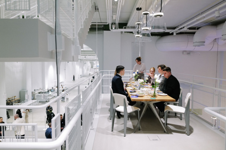 «Где еще можно было перезнакомиться таким составом за час?!» — написала у себя в телеграм-канале журналистка Мадонна Мур, которая во время ужина The Blueprint 100+2 попала за один стол с молодыми шеф-поварами, модельными агентами, пиарщиками и танцовщиками Большого театра. На входе в новый ресторан «ГЭС-2» нужно было вытянуть браслет. Каждому цвету соответствовал один из одиннадцати столов, названных в честь категорий списка The Blueprint 100 («Мода», «Танец», «Бьюти», «Академическая музыка», «Современное искусство», «Гастрономия», «Театр», «Литература», «Подиум», «Поп-музыка», «Кино»).