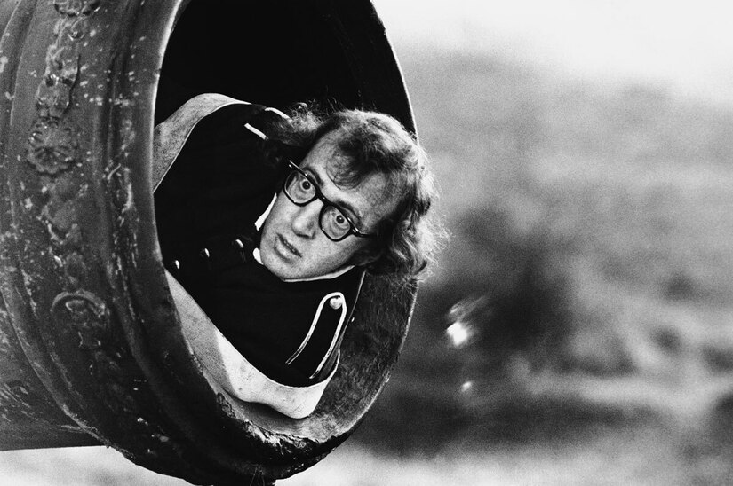 Вуди Аллен готовится к выстрелу из пушки во время съемок комедии «Любовь и смерть», 1974