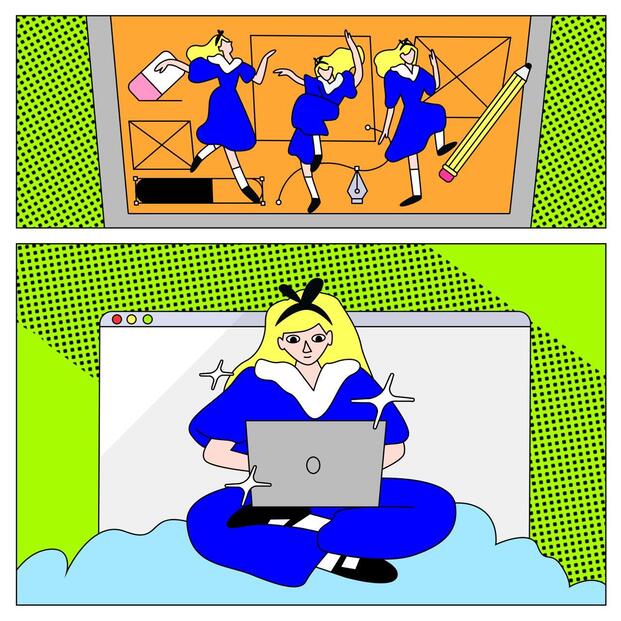 Алиса буквально провалилась в кроличью нору новых требований: десяток разных форматов, от мобильного баннера до ТВ-заставки, сжатые сроки и ключевое условие — единый визуальный стиль. Ее привычный мир последовательных ТЗ и предсказуемых гайдлайнов перевернулся с ног на голову. Затем она глубоко вдохнула и решила проявить профессиональную гибкость. Она не стала бороться с хаосом, а начала его структурировать.
