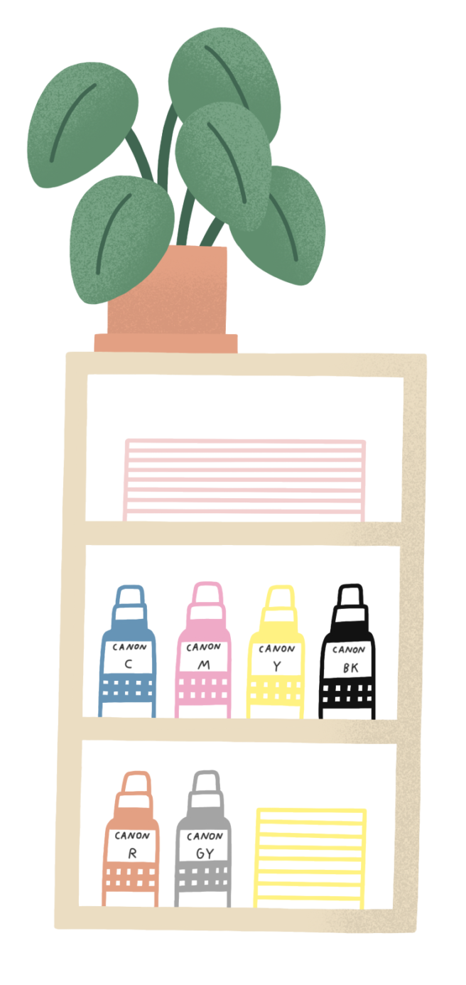 Будет обидно, если вы уже настроились на рабочий лад, но обнаружили, что закончилась бумага или картриджи. Лучше завести календарь с напоминаниями — когда обновить расходники и выделить для них отдельный прозрачный контейнер, чтобы все было на виду. А еще удобно, когда ключевые детали устройств можно легко и быстро заменить без помощи сервисного центра. У принтеров Canon есть легко заменяемый абсорбер (губка для поглощения отработанного красящего вещества), который можно купить и поставить самостоятельно. У бутылочек с чернилами есть специальные сопла с функцией ключа, которые облегчают перезагрузку и главное — исключают ошибку в процессе заливки нужного цвета. Одного комплекта чернил хватает примерно на 3800 фотографий 10×15 см, а задний лоток вмещает до 100 листов бумаги. Это значит, что такой аппарат можно запросто поставить даже в фотоателье, где обычно очень много заказов.