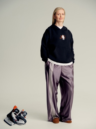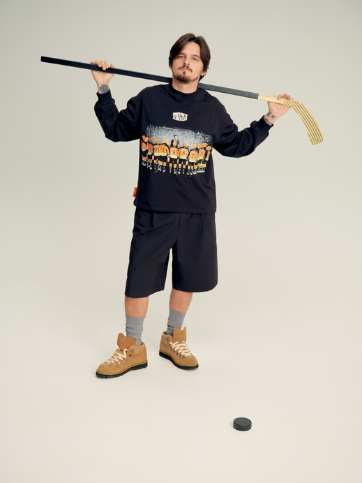 Спорт сегодня — это язык, на котором мы говорим о себе, о теле, о страхах и уязвимости, о сообществе, к которому хотим принадлежать. Кинопоиск совместно со спортивным творческим объединением «Ничего Обычного» представили коллекцию «Смотрите хоккей» — капсулу одежды и аксессуаров с принтами по мотивам работ трех художников: Алины Гибадуллиной, Марии Сафроновой и Андрея Оленева. Мы поговорили с ними о том, как спорт и искусство связаны и как хоккей превращается в визуальный язык, который можно носить и видеть в деталях каждой вещи.