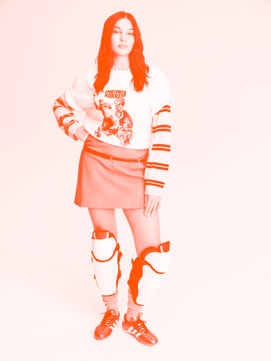 Для этого проекта ребята из «Ничего Обычного» пригласили меня на хоккей — мой первый матч. Такое стихийное зрелище. Меня удивило, как хоккеисты втягивают зрителей в происходящее на льду. Были моменты, когда я просто погружалась и становилась частью процесса. Насколько все выразительно, брутально даже — знаковая пластика игроков складывается в красивые ритмические композиции. Сколько всего с этим можно сделать в искусстве! У меня появился даже какой-то детский интерес, я постоянно задавала себе вопросы: «А вот это как? Как это ощущается? Как им видно?»