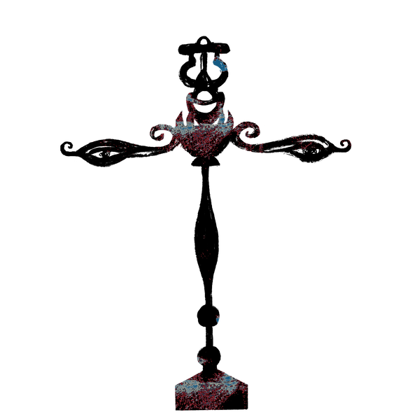 Грёма, наконец, нащупывает крест, направляет на деда Славу. Шепчет: