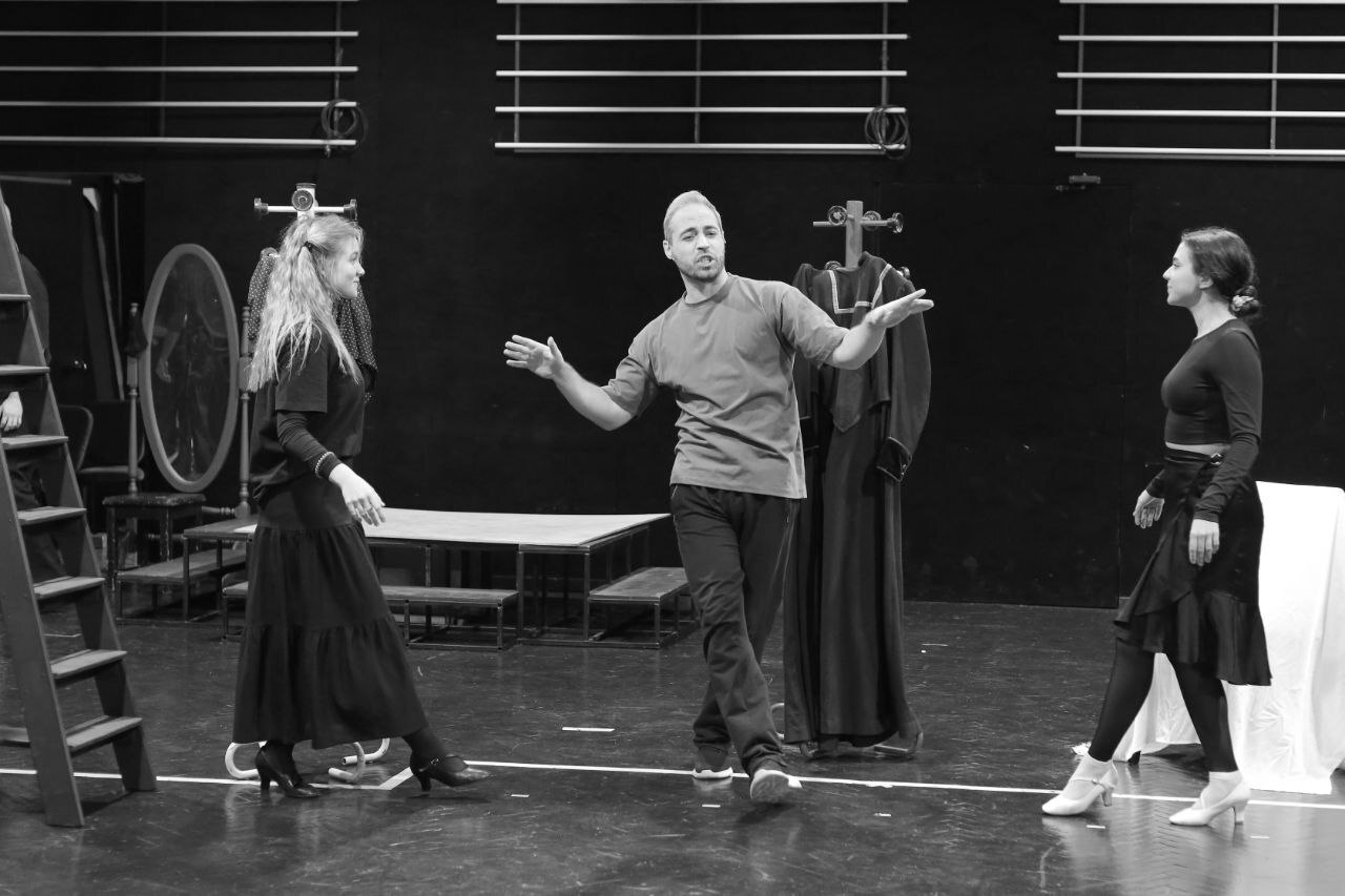 О постановщике спектакля Георгии Суркове известно не то чтобы много — в августе 2025-го он возглавил Театр русской драмы Дагестана, а до этого год был главным режиссером Камчатского театра драмы и комедии. Но в целом Театр Ермоловой в последнее время явно пытается встрепенуться — под конец года там вышел спектакль по поэме «Кому на Руси жить хорошо», скорее неудачный, но с парой запоминающихся деталей — во-первых, часть названия была как будто вымарана цензурой, а во-вторых, музыкальные номера на стихи Некрасова, исполненные разухабистым ЖКХ-панк-бэндом на всем, что под руку попадется, можно воспринимать как отдельный концерт.