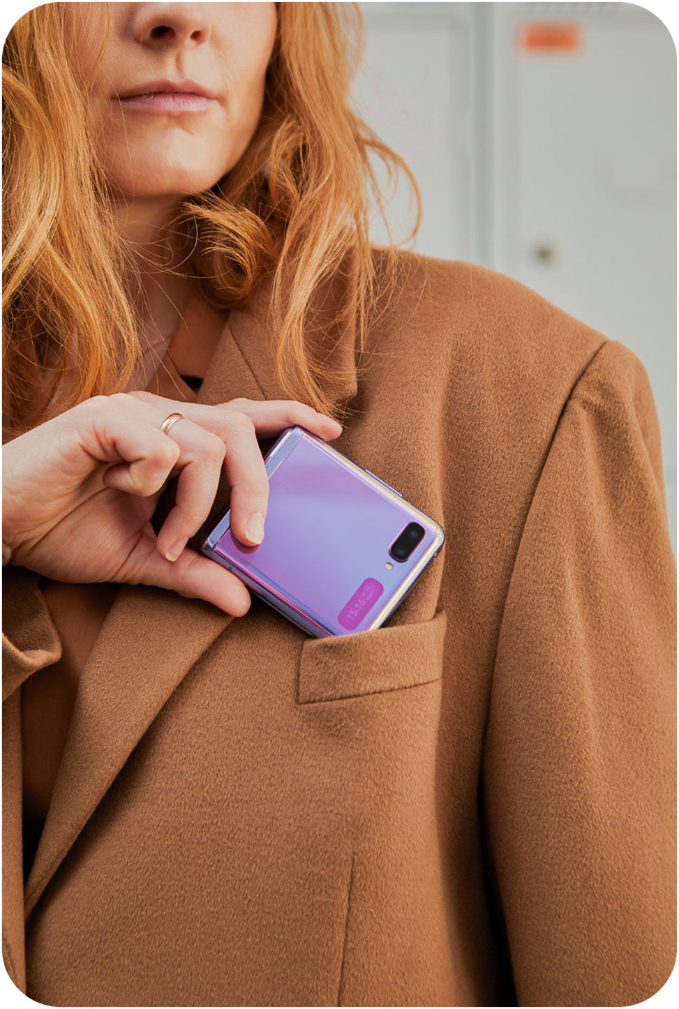 Самое главное в новом смартфоне Samsung Galaxy Z Flip — это то, что он складной и легко помещается в руке. Но было бы удобнее, чтобы был ремешок, как на небольшом клатче, который соединял бы телефон и руку. Он должен быть адаптирован к чехлу телефона, легко убираться, не мешать моей работе со смартфоном, но в то же время быть дополнительным аксессуаром.