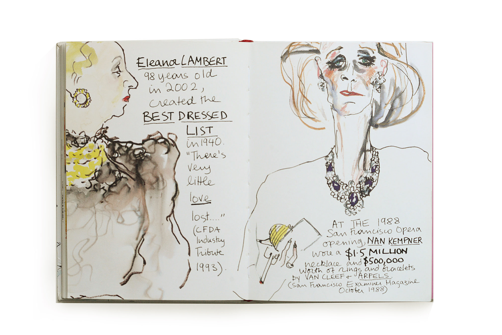Эту книжку оценила бы кэрролловская Алиса: сплошь цветные картинки, минимум текста. Автор, выпускница Сент-Мартинса и Парсонса, журналист и иллюстратор Глэдис Перинт Палмер с 80-х проводит добрую половину года на модных показах, преподает в Академии искусств в Сан-Франциско и может гордиться прижизненным мемориалом — 24 мая 2006 года в Сан-Франциско был провозглашен Днем художницы.