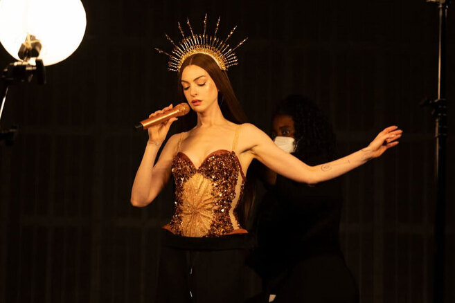 Дэвид Лоури, известный по «Легенде о зеленом рыцаре» и «Почти рождественской истории», просто вознамерился создать свою поп-звезду. Но так как он не музыкальный продюсер, а кинорежиссер, создал он ее на экране — снял отчасти мюзикл, отчасти хоррор про поп-певицу с псевдонимом Мать Мария, заручившись поддержкой студии А24. Ее роль на себя приняла Энн Хэтэуэй (благо имеющая «Оскар» за мюзикл «Отверженные» Тома Хупера), альбом для нее написали и спродюсировали Charli XCX, Джек Антонофф и FKA Twigs, а хореографию поставила Дани Витале, работавшая с Холзи, Сьюки Уотерхаус и самой Хэтэуэй на других проектах. «Я хотел изобразить Мать Марию максимально культовой фигурой, — сказал Лоури в интервью. — Хотел, чтобы зрители испытывали к ней глубокую преданность… Чтобы она дарила им почти что религиозный опыт». Сам Лоури, по его же словам, вырос фанатом поп-музыки — и в очень католической семье: «Мой отец был профессором теологии в Далласском университете, поэтому я всю жизнь был окружен всякой символикой».