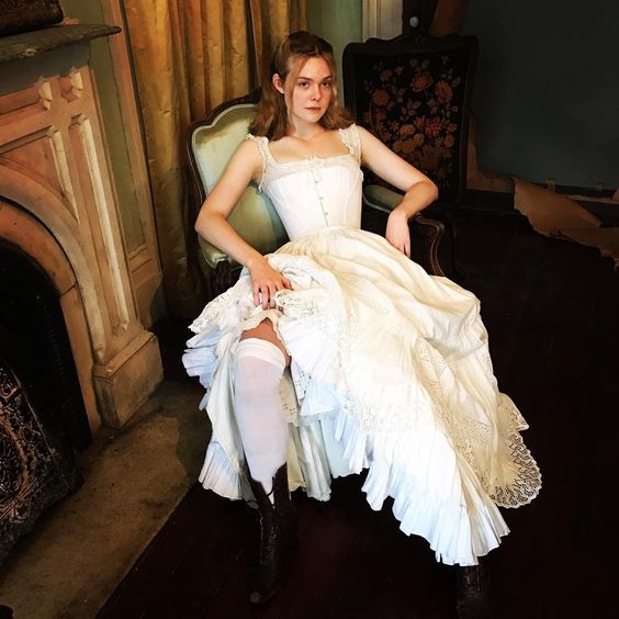 Юная воспитанница Алисия, с одной стороны, все еще скучает по своим друзьям детства, с другой — уже вовсю учится флиртовать. Поэтому художница хотела добиться от гардероба героини ощущения, будто «одежду для нее до сих пор покупает мама». В розовом и лавандовом «она, очевидно, уже не маленькая девочка, но мы все еще считываем ее невинность». В инстаграме Баттат можно найти фотографии со съемок, детали платьев и портрет Эль Фэннинг с припиской: «Это один из моих и Эль любимых костюмов, но он так и не появился в фильме».