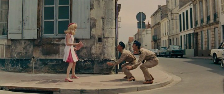 Но становится ясно — героям, одетым в зеленое или хаки, доверять не стоит — будь то солдаты, марширующие по улицам; артистки, укатившие к морякам, повязав изумрудные платки на шею; Гийом в бархатном костюме, прямо говорящий о своих желаниях; или старик Дюпре, в итоге оказавшийся кровожадным маньяком. Но и подобные неприятности герои встречают с наивной ухмылкой.