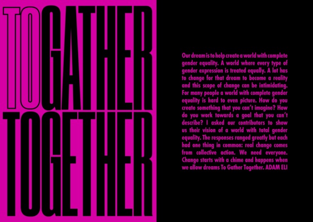 «Бренд пригласил меня работать над креативным проектом для Chime for Change, — говорит Адам. — А точнее, предложил мне создать журнал. Сейчас полностью контролирую творческий процесс и контент зина, сам выбираю контрибьюторов. Единственный совет, который дали мне в Gucci: „Ты можешь делать все, что хочешь, но это должно быть глобально. Глобальность — главная цель, нам нужны голоса со всего мира“. Они также представили меня моему потрясающему партнеру — художнику MP5, который на тот момент уже разрабатывал с Алессандро Микеле брендинг для Chime for Change, и я был счастлив объединить наши усилия.