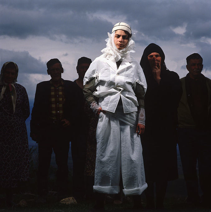 Чтобы не слишком разбавлять колорит, Рэи решила смешать в образах вещи Comme des Garçons и предметы местного быта — так в кадре появились садовые тачки, глиняные кувшины и даже старая шарманка фабрики «Нечада», звуки которой, судя по видеодневнику экспедиции, сопровождали весь съемочный процесс. В отдельных образах многослойные авангардные вещи бренда соседствуют с грузинской чохой, платками и сванскими шапками. Модели понятия не имели, что за вещи примеряют на себя, но выглядели так, будто носили одежду Comme des Garçons всю жизнь.