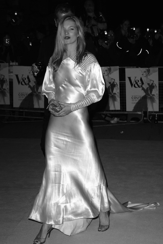 В середине нулевых, пожалуй, самым запоминающимся винтажным выходом было появление Кейт Мосс на открытии выставки The Golden Age of Couture в Музее Виктории и Альберта. Длинное золотистое платье Dior со шлейфом случайно испортила Кортни Лав, наступив на подол и порвав его. Кейт не растерялась: она просто завязала порванный подол на бедрах, превратив платье из макси в мини и став звездой вечеринки.