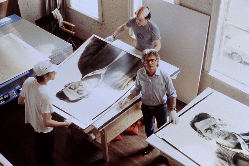 Ричард Аведон в студии в Нью-йорке с командой, 1985 год