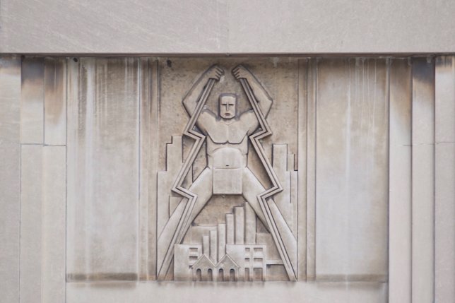 Фронтальный вид на здание морского транспорта, скульптура: Мушенхейм и Броун, здание: Эли Жак Кан, фото: Фрэнк Навара