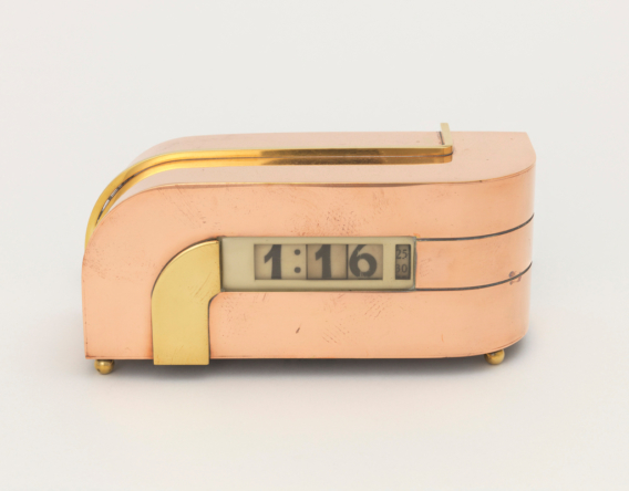 Часы Zephyr в стиле «стримлайн», Карл Эмануэль Мартин Вебер и Джордж Ф. Адоматис, латунь с бакелитовыми и металлическими вставками, США, ок. 1938