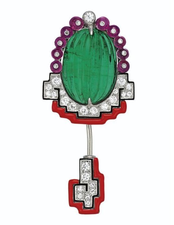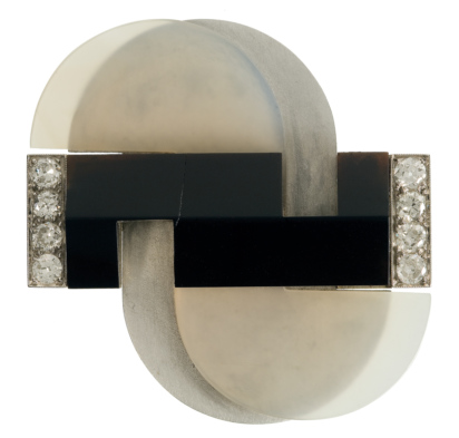 Украшения ар-деко заслуживают отдельного упоминания. Все любимые темы и мотивы стиля здесь проявили себя по максимуму: экзотические мотивы, новые материалы, любовь к геометрическим формам. Кольца, напоминающие уменьшенную копию крыши Крайслер-билдинг и других памятников архитектуры. Броши — миниатюрные рельефы с корзинами и гирляндами или геометрические абстракции. Бакелитовые браслеты, имитирующие африканские деревянные украшения. Любимый зоопарк ар-деко с ланями и пантерами. Геометричные дресс-клипы, тоже словно вырезанные из фасадов архитектуры. И все это доступно как в роскошном исполнении с дорогими камнями как у Cartier или Van Cleef & Arpels, так и в бюджетном — со стразами. Вообще если бы пришлось изучать ар-деко лишь по одной категории предметов, логично было бы выбрать украшения.
