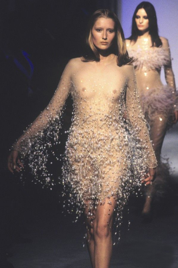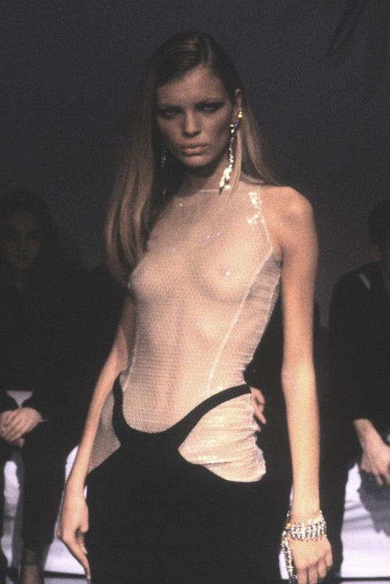 В 1997 году, когда коллекцию показали в Париже, дом Thierry Mugler (тогда он еще назывался именно так) еще считался одним из влиятельнейших в мире моды. Через пять лет его основатель Тьерри Мюглер покинет собственный бренд, и у того начнется непростой период: кутюрную линию закроют, а креативные директора начнут регулярно меняться. Но пока все по-прежнему: Мюглер охотно шьет кутюр (коллекция весна–лето 1998 как раз кутюрная) и пребывает в статусе иконы, дизайнера, установившего моду на «амазонок» и «агрессивную женственность» (впрочем, статус сохранился за ним и сегодня — когда ему уже почти 70, он увлеченный бодибилдер, а себя просит называть псевдонимом Манфред).