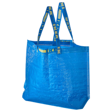 Еще одна звезда на небосклоне тоутов — синяя Ikea Frakta, водонепроницаемая сумка из полипропилена, прошедшая с момента появления в 1990-х путь от утилитарного предмета до поп-культурного феномена. В 2017 году ее дизайн повторил Демна в Balenciaga, выпустив Arena Extra Large Shopper, а в 2018-м Верджил Абло в коллаборации с Ikea создал свою версию тоута с надписью Sculpture.