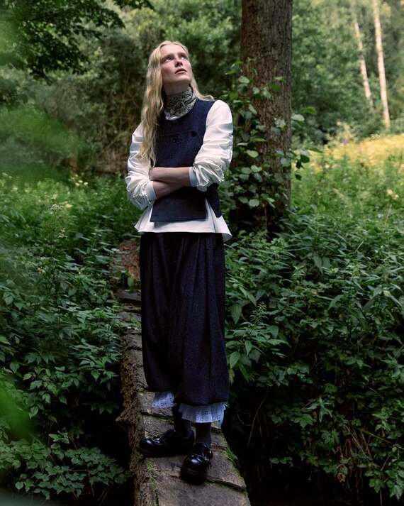 Ее же любимой — по крайней мере прямо сейчас — стала коллекция «Шторм» сезона осень—зима 2025/2026: с белыми панталонами, наряженными кружевом, бежевым пальто, что выглядит как тренч, а греет — как пуховик, и серым жакетом, украшенным разными пуговицами. «Вообще, моим референсом были скандинавские моряки. У них обычно есть очень теплые жилеты — как правило, закрытые, стеганые и на подкладке. Отсюда идея, что одежда — как дом. И что во время шторма тебе в ней очень комфортно — в ней хочется не только жить, но и проживать какие-то сложности. Мы свои так и проживаем», — объясняет Юлия. Людмила, отвечающая, что называется, за операционку, кивает: в 2025-м из-за турбулентности, что переживает вся российская модная индустрия, пришлось закрыть собственное производство, на котором и отшивалась более сложная одежда. Благо опыт уже позволяет грамотно ставить задачи контрактным производствам — передавая лекала. Удалось сохранить и все четыре магазина — в Москве, Екатеринбурге, Новосибирске и Барнауле, — которыми марка успела обзавестись за 8 лет. «В сложные периоды наш бренд всегда выруливал — неведомой нам силой», — поясняет Юлия, заодно подмечая, что в честь этой «неведомой силы» и названа марка. «Если говорить языком верующих, то число 7 — сакральное. A слово dots символизирует наше развитие — от точки к точке. Нет такого, что мы остановились и успокоились». Так что, может, эти точки станут восклицательными знаками.