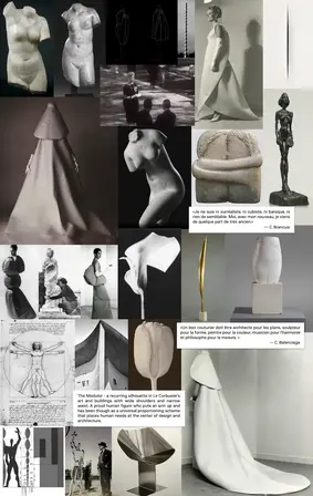За несколько дней до показа Пиччоли выкатил в сети мудборд. В нем была самая узнаваемая цитата Кристобаля Баленсиаги — «хороший кутюрье должен быть архитектором в дизайне, скульптором в формах, художником в цвете, музыкантом в гармонии и философом в чувстве меры». А еще упоминалось множество произведений искусства. Помимо Витрувианского человека Леонардо да Винчи, видимо, и послужившего мерой всего, стало ясно, что источниками вдохновения для дизайнера послужили Лучо Фонтана с его разрезанными холстами, Христо с его искусством упаковать все и вся, объемные формы Константина Бранкузи, тонкие силуэты Альберто Джакометти и модульные принципы Ле Корбюзье. Вроде бы все логично, поскольку сам Кристобаль Баленсиага был несомненным модернистом и отлично умел завернуть в ткань женское тело. Но все же нам было предъявлено слишком много референсов для внятной и цельной концепции.