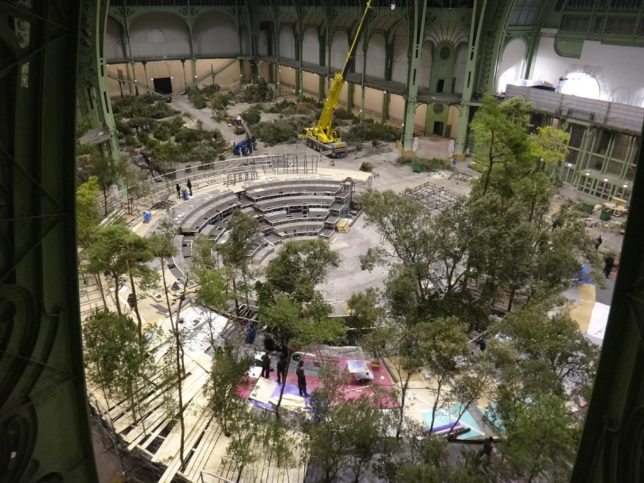 Своды Гран-Пале превращаются в ночной лес. На стенах пейзаж показывает стволы, через которые пробивается лунный свет, пол усыпан черным лавовым туфом, а модели ходят по деревянному настилу, вокруг которого клубится туман.