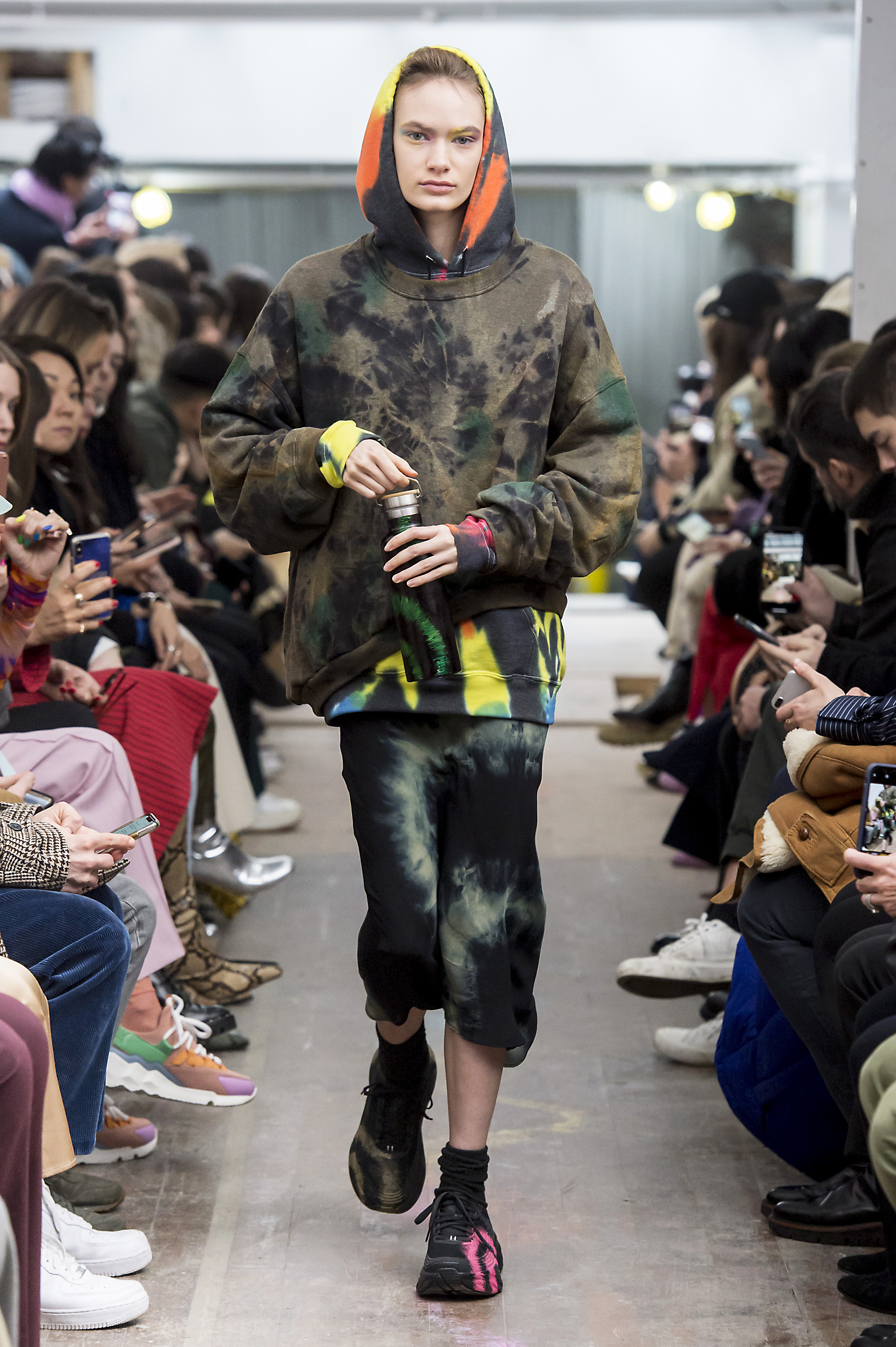 Показ проходил под лекцию активиста и хип-хоп-исполнителя Xiuhtezcatl Martinez. 18-летний Мартинез — представитель коренного населения США: его отец родом из ацтеков. Еще в 14 лет он выступил с лекцией о проблеме глобального потепления на Ted, а спустя два года в компании еще двадцати молодых американцев подал в суд на правительство США — требуя от него принять более решительные меры по спасению окружающей среды. «Мы будем бороться и защищать все, что мы любим — от нашей земли до нашей воды, гор, рек и лесов», — объяснял тогда юноша. На показе Collina Strada он рассказал об очистке океанов от мусора, а в финале шоу прочитал рэп.