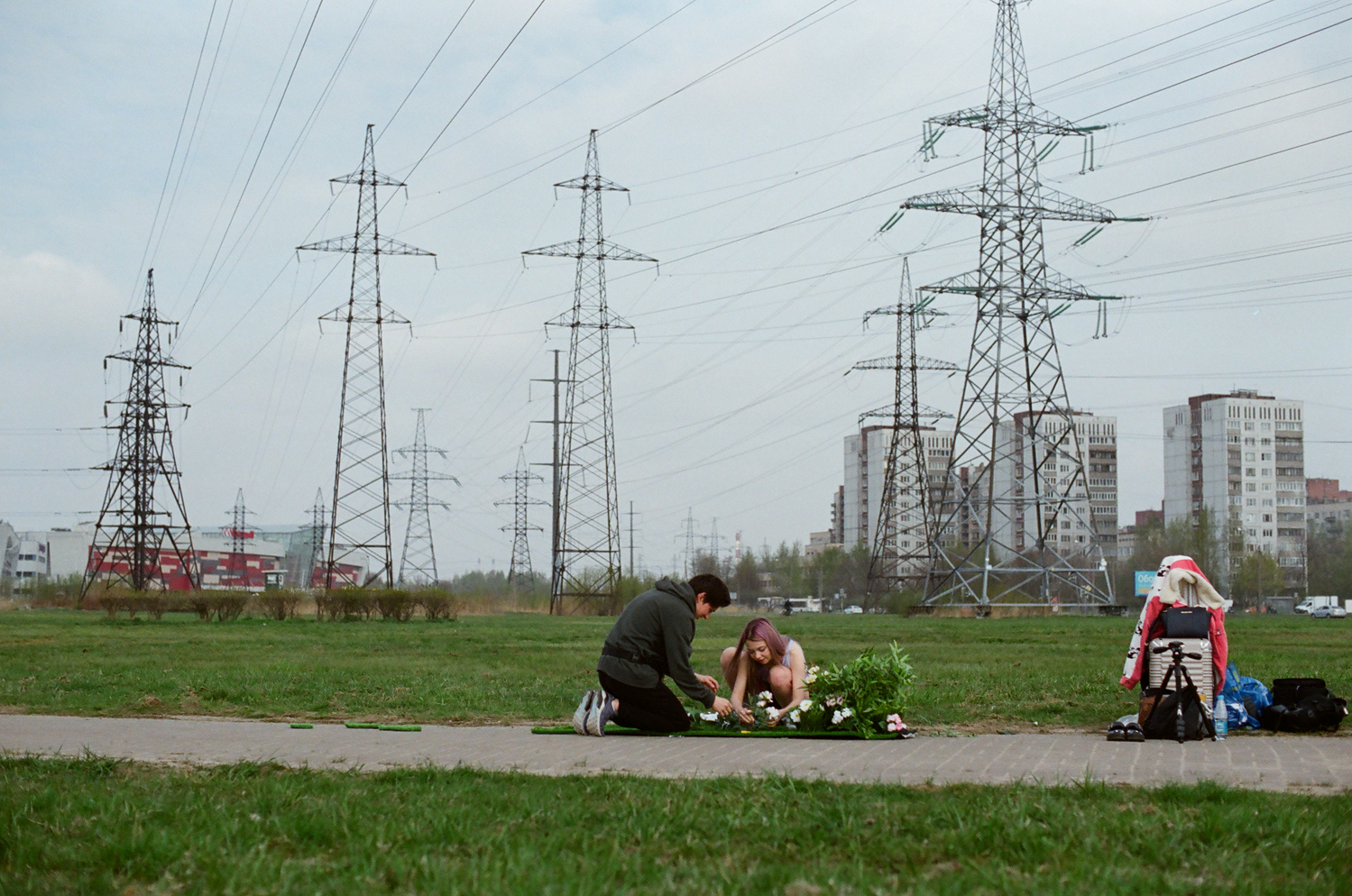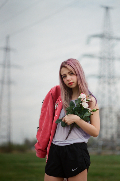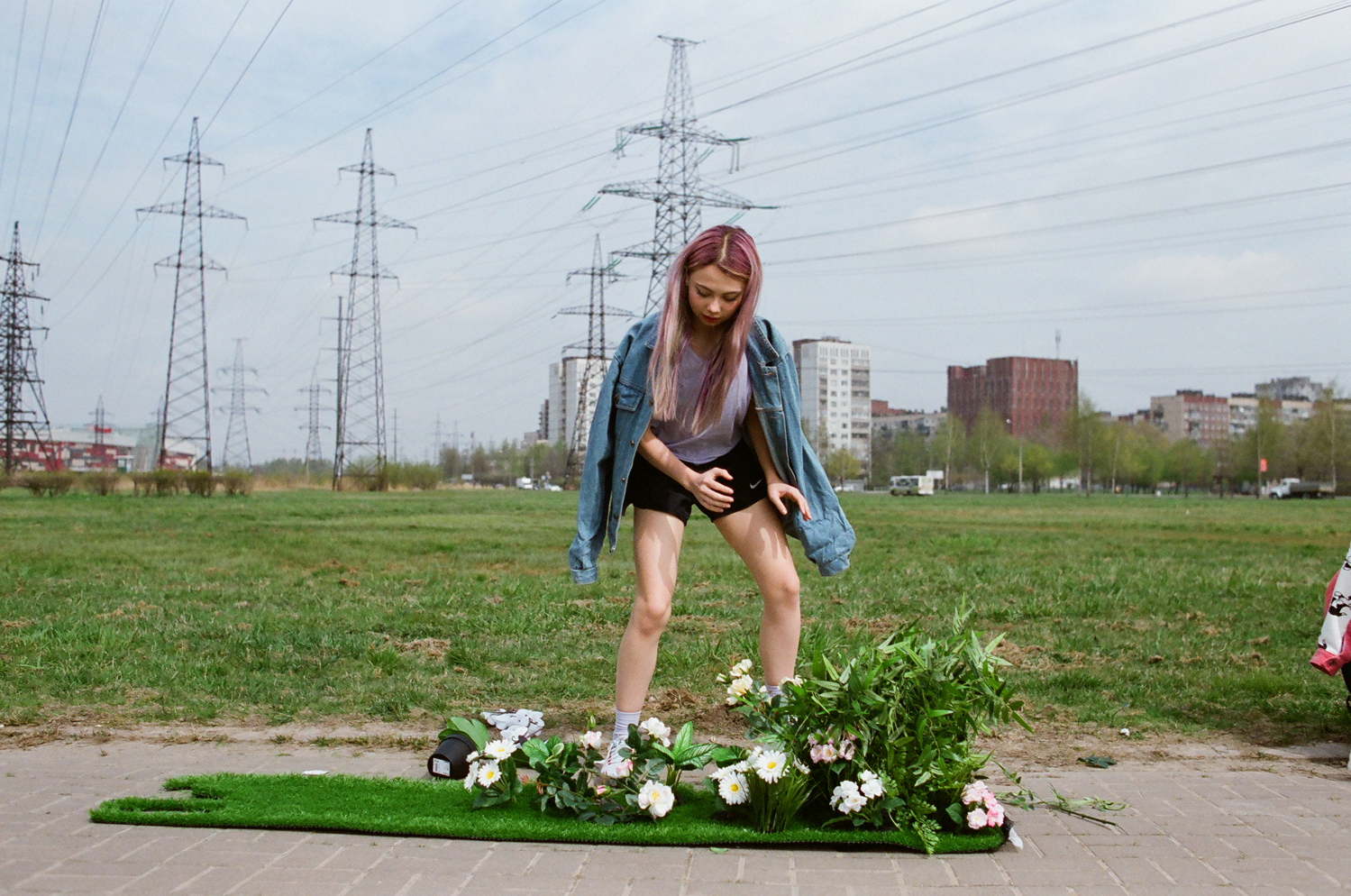 «В качестве локации для съемки я искала места из обычной жизни, такие, как мы видим каждый день: городской пустырь и высоковольтные вышки. Дополнительных ярких элементов достаточно в моей задумке — цветы, зеленеющая трава, бегущая я в яркой форме с летящими назад волосами. Я создаю историю о том, как фантазия начинается с пробежки», — рассказывает Лена Шейдлина о съемке в одном из индустриальных районов Петербурга.