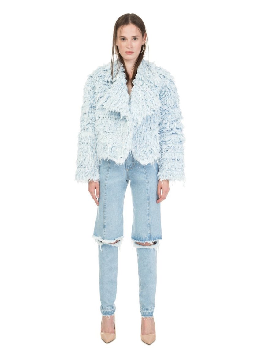 Украинский бренд Ksenia Schnaider также представил достойную альтернативу — шубу из переработанного денима, которая визуально напоминает мех. «Мы придумали джинсовый мех несколько лет назад. Мы изготавливаем его вручную, нарезая множество полосок денима, а затем стирая их с камнями». Сейчас бренд производит несколько моделей шуб — на погоду выше нуля без подкладки и на погоду ниже нуля с утеплителем.