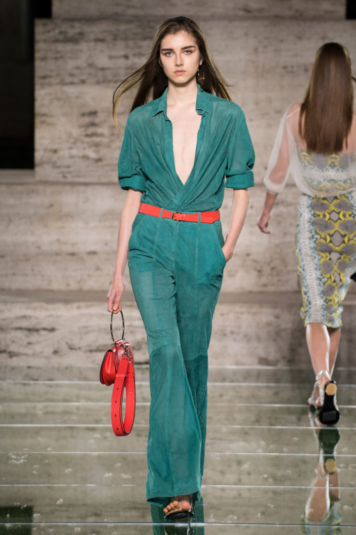 Не выдержали даже на нейтральном Vogue Runway, обычно предпочитающем в случае безоговорочно плохого показа сфокусироваться на декоре комнаты и культурных отсылках. «Вечеринка называлась «Любовь» («Amor»). Эмоции по отношению к одежде были совсем другими — и от этого название казалось еще более обидным. За исключением одного зеленого замшевого комбинезона и вельветового вечернего платья коллекция была неубедительной», — сдержанно, но все же раскритиковал коллекцию Salvatore Ferragamo (2) один из критиков сайта Люк Лайч.