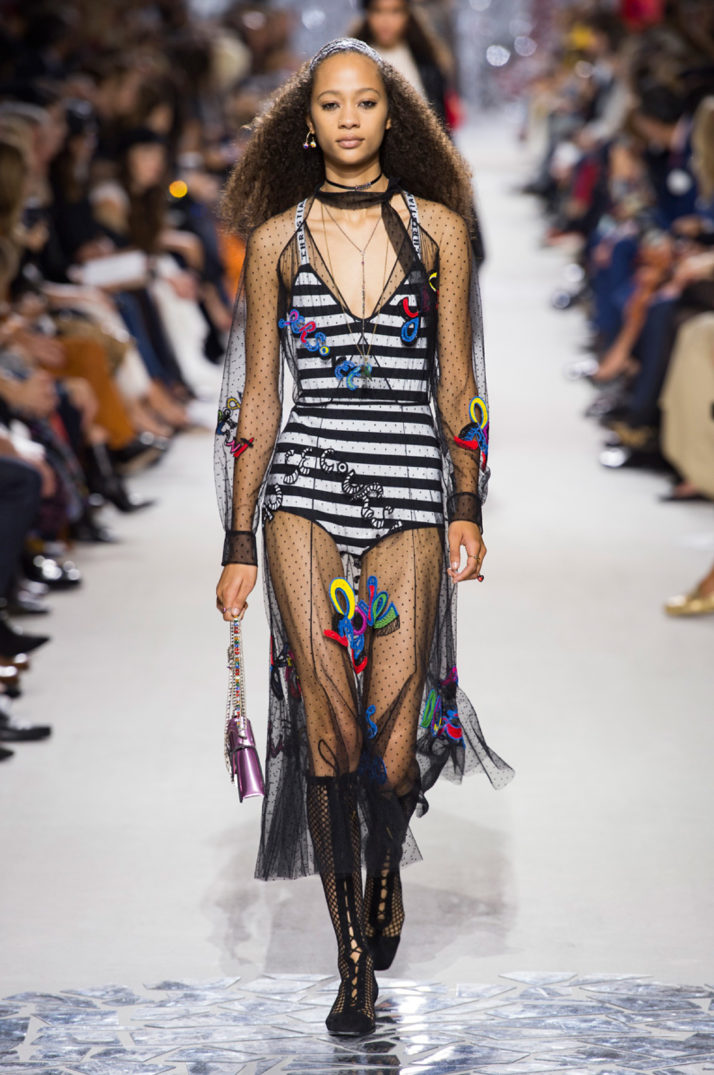 Я мечтаю о том, чтобы Кьюри отказалась наконец от идеи феминизма на подиуме. Это лишь коммерческая глазурь, под которой нет никакого смысла. Но еще больше удивляет то, что она, кажется, искренне верит, что такая одежда «разговаривает» с миллениалами. Мне кажется, что наряжаться в тельняшки и юбки из фатина поверх трусов молодежи хочется только в фантазиях Марии Грации.