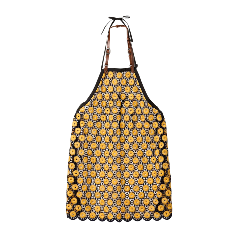 Екатерина Сивер: «Впервые такая модель складного столика авторства итальянского дизайнера Ромео Соцци был представлен еще в конце 1970-х, а конкретно этот, с инкрустацией из разных ярких пород дерева во вкусе Мондриана, — на Неделе дизайна в Милане в 2024 году; потом его выпустили ограниченным тиражом в 50 пронумерованных экземплярах. И фартук, и складной столик — переосмысление утилитарного предмета как произведения искусства. Фартук — архетип домашней работы, рабочей одежды, складной столик — простейший предмет сервировки. И Прада, и Соцци берут самую “прозаическую” типологию и превращают ее в объект с эстетической самоценностью».