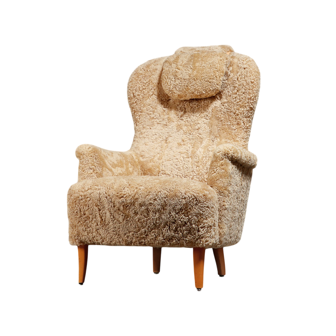 стокгольмский дизайнер и педагог, ассоциирующийся со шведским модернизмом. Его деревянный стул Lilla Åland (1942) и кресло Farmor (1950-е) считаются стандартами скандинавского дизайна. Конкретно эта версия кресла — в овечьей обивке — очень