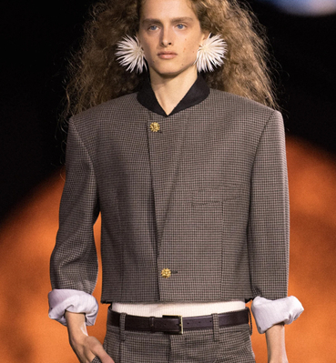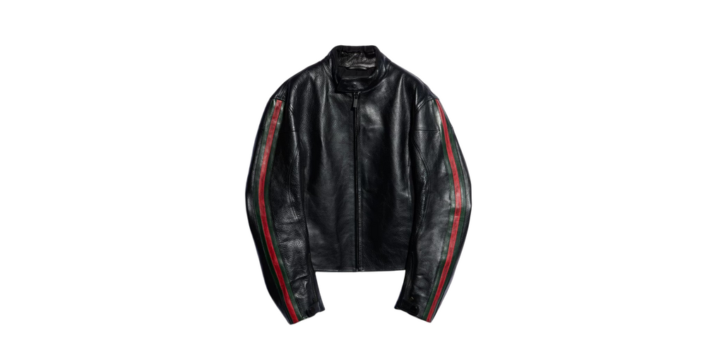 Екатерина Сивер: «Консоли дуэта Софи Миддернахт с Мартеном Александром можно было увидеть в том числе на Cosmoscow 2025. Эта, в единственном экземпляре, сделана из переработанных подземных дизельных цистерн, так что с курткой Демны их роднит эстетика состаренной поверхности. В куртке Gucci используется “пожившая” золотая фурнитура и кожа с характерным блеском, имитирующим износ. Словом, в обоих случаях патина,