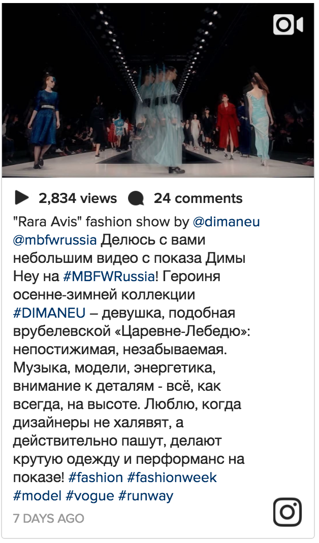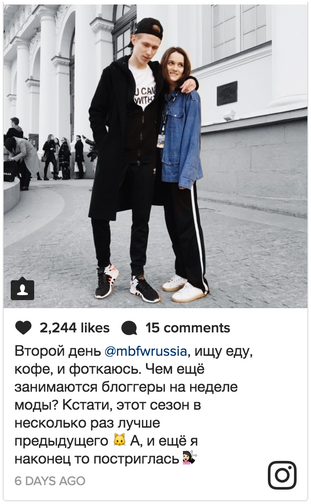 Неделя моды «Мерседес-Бенц» в России, как и прежде, иллюстрирует срез альтернативной модной реальности: в этом сезоне показ коллекции дочери главы Чечни, «русский Диор» Слава Зайцев и меха «Екатерина» соседствовали с шоу молодых и никому не известных имен. Когда Instagram предложил молодым блогерам поделиться впечатлениями от локальной недели моды, мы решили не оставаться в стороне и узнать, что про московские показы думает новое поколение наблюдателей – Generation Z. Четыре Instagram-блогера сами выбирали показы и детали, которыми они хотят поделиться с подписчиками, а по завершении MBFW Russia резюмировали, что они думают по поводу российских дизайнеров и состояния индустрии в целом.