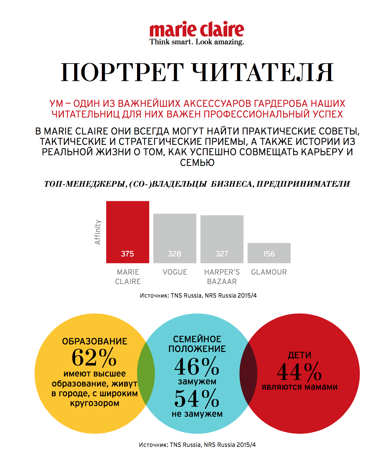 В медиаките любого большого журнала можно найти подробное описание бренда: о чем он, для кого и чем отличается от других. Но при всей важности этого момента у большинства изданий потребитель получается очень усредненным. И Harper’s Bazaar, и Vogue, и Elle, и Marie Claire описывают свою читательницу как некую «женщину со средним или высоким доходом, которая успешна, активна, много путешествует, интересуется происходящим в мире и любит моду». Отличная, конечно, женщина, но почему она должна отдать свои время и деньги именно этому журналу или сайту? Как говорил Эди Мерфи в одном из своих бенефисов, «что ты сделал для меня в последнее время?» Тяжеловесные медиабренды-гиганты находятся сейчас в сложной ситуации, когда информация о моде и красоте как таковая не является самоценной — ее и так слишком много. Нужен угол, конкретика, за которой читатель уходит в независимые издания с понятной репутацией. А значит, нужны изменения.