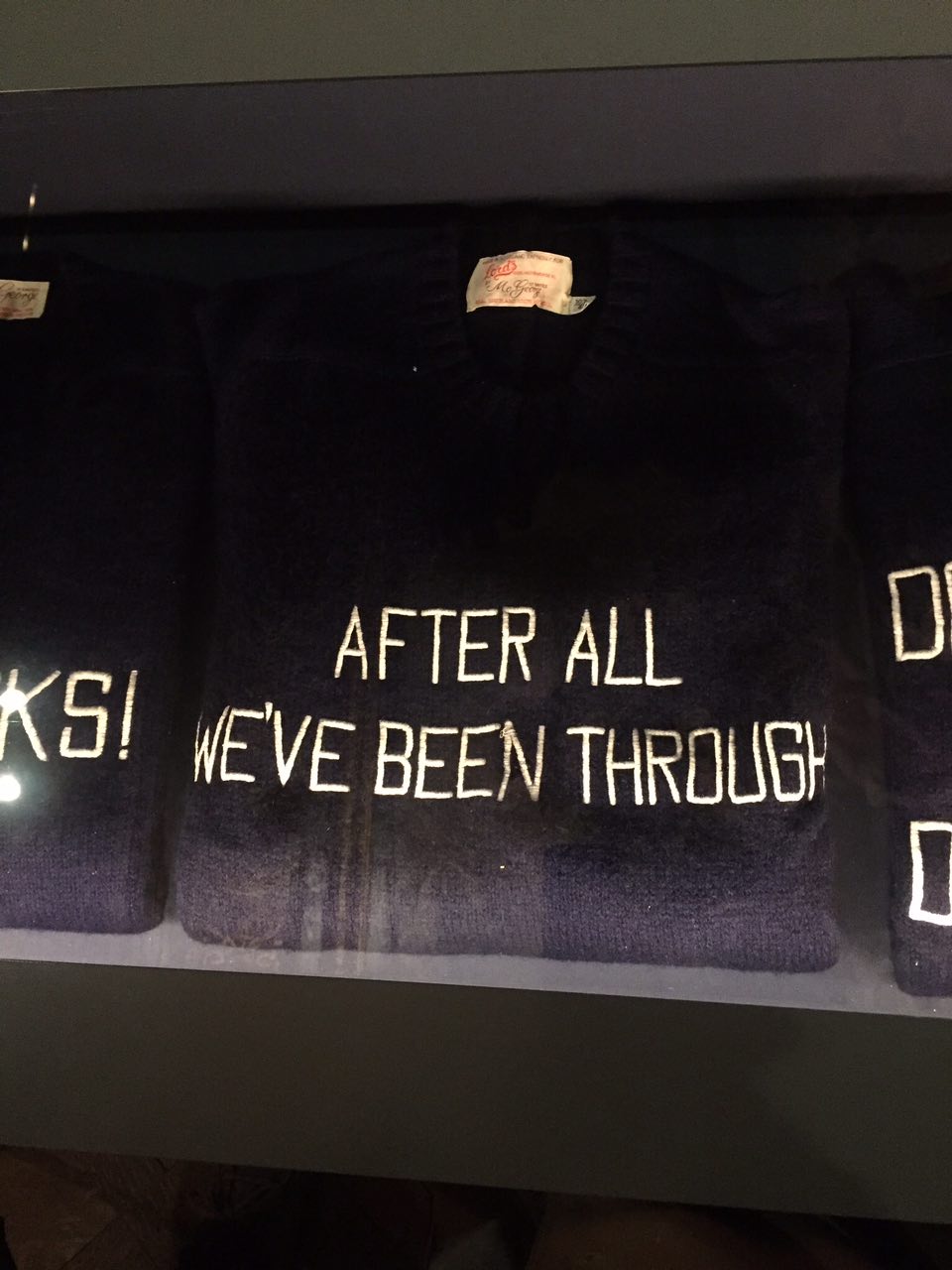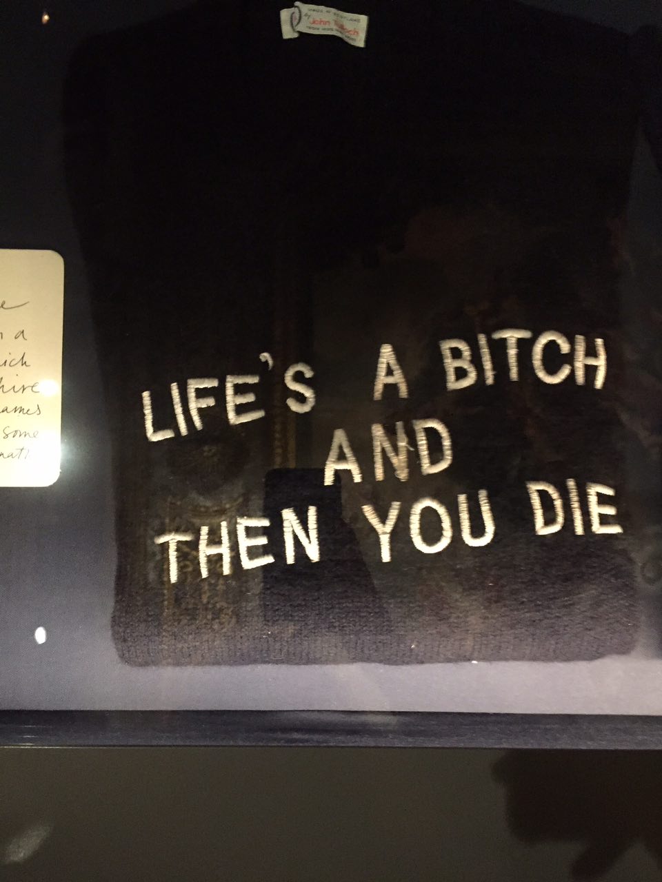 Cамым забавным персонажем в клане был 11-й герцог Девонширский Эндрю. Он слыл большим модником и, несмотря на финансовые трудности, имел потрясающий гардероб, частично перешитый из старой одежды. А еще Эндрю обожал свитера с надписями задолго до того, как это стало трендом. На выставке представлены 15 лучших его слоганов, включая Never Marry a Mitford. С ними даже сделали сувенирные футболки.