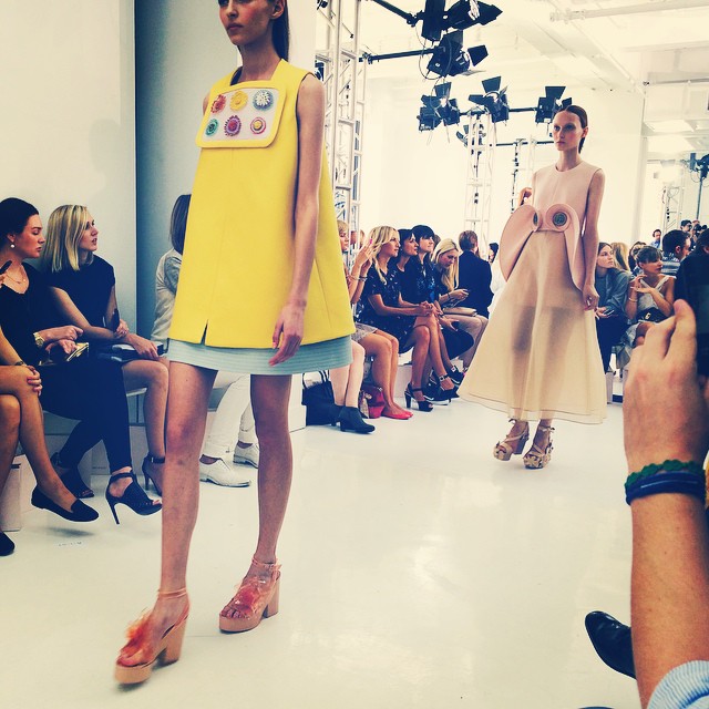 Для начала стоит вспомнить, что то, как мы видим модные новинки, за последние сто лет менялось неоднократно. До 1932 года, когда американский Vogue опубликовал на обложке знаменитую цветную фотографию модели с красным мячом, большую часть новых фасонов женщины впервые видели в иллюстрациях. До того как до моды снизошли ежедневные газеты, первые фото показов появлялись спустя три месяца. Настоящей революцией стал запуск в 2000-м сайта style.com, который публиковал фото каждого лука с показа через несколько часов после его окончания, а сейчас на его наследнике — Voguerunway.con — они появляются практически в режиме реального времени. Пару лет назад, понимая, что мода становится все интереснее для более широкого круга людей, бренды начали делать прямые видеотрансляции с подиумов, а блогеры и редакторы мгновенно публиковать фото в Instagram. Ну а теперь возможность прямой трансляции доступна каждому, да еще и алгоритм, по которому работает Instagram и Facebook, подобные трансляции показывает в первую очередь. В итоге в погоне за строптивой цифровой аудиторией редактор модного издания и сам потихоньку становится человеком-медиа, который снимает, монтирует, ретуширует, пишет забавный комментарий и публикует контент.