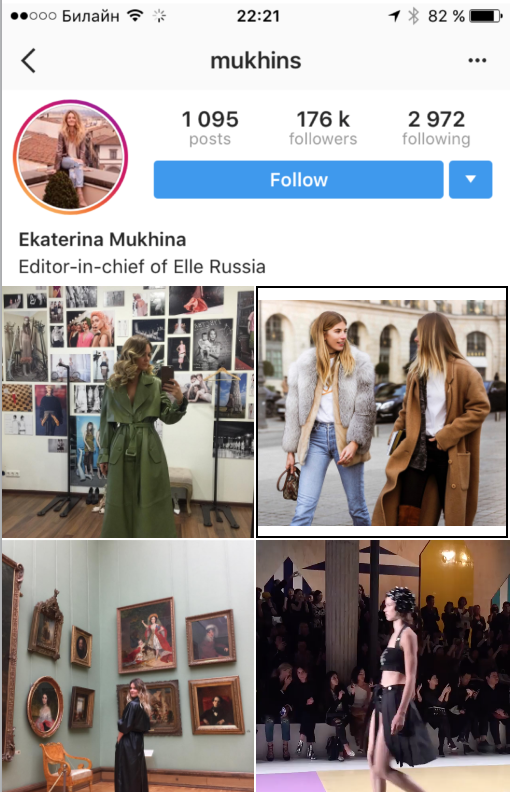 Ну и не стоит забывать о том, что кроме творческих съемок собственного завтрака и подпрыгивания на месте для Boomerang у редакторов моды, стилистов и байеров есть основная работа и что показы, вопреки расхожему мнению, — это не вечеринки с шампанским, а 12-часовой рабочий день, расписанный по 30-минутным интервалам. «Ведение соцсетей для редактора сегодня стало обязанностью по умолчанию. Само собой разумеется, что кроме основной работы я ответственна за Instagram и, конечно , если делать туда качественный контент, это занимает много времени. Я смотрю на Instagram как редактор: нужно выбрать фотографии, которые хорошо встанут друг с другом, правильно сделать кроп, где-то поближе, где-то подальше, написать правильный текст, все как в журнале: надо проверять информацию, делать ресерч перед тем, как порекомендовать что-то; Это отнимает очень много времени, поэтому мой Instagram немногословный, с акцентом на красивые съемки и кадры из фильмов», — говорит главный редактор Elle Россия Екатерина Мухина.