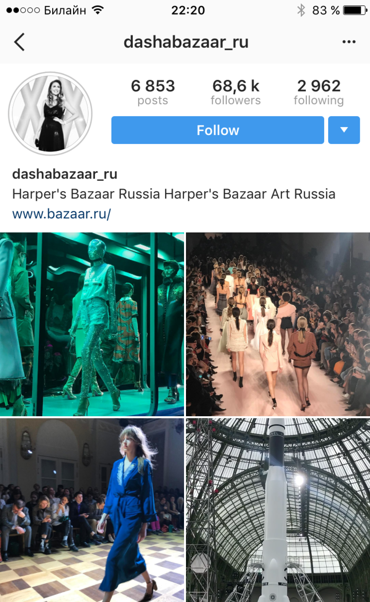 За всем этим интересно подглядывать, лайкать, комментировать и порой даже получать ответ. Мнению человека, жизнь которого ты наблюдаешь утром, днем и вечером, автоматом начинаешь больше доверять. Ведь одно дело, когда крем хвалят в журнале — на соседней странице с его рекламной полосой, а другое — когда он стоит на туалетном столике главреда издания, который стал вам уже практически родным. То же и с байерами. Что желаннее — обычные туфли на полке ЦУМа или туфли, которые на ваших глазах выбирала в шоу-руме Алла Вербер, а потом обсуждала их за обедом с подругами как главный хит сезона. Это подтверждают и цифры. Так, например у официального аккаунта Harper''s Bazaar в России 81.1 тысячи подписчиков в Instagram, а у главреда журнала Даши Веледеевой — 68.6 тысячи, у аккаунта TSUM Moscow 476 тысяч подписчиков, примерно столько же подписчиков в сумме — у аккаунтов его ведущих байеров Аллы Вербер (171 тысяча) и Натальи Гольденберг (244 тысяча). А у главного редактора Elle Russia Кати Мухиной (176 тысяч) и вовсе на 50 тысяч больше, чем у журнала, которым она руководит (122 тысячи).