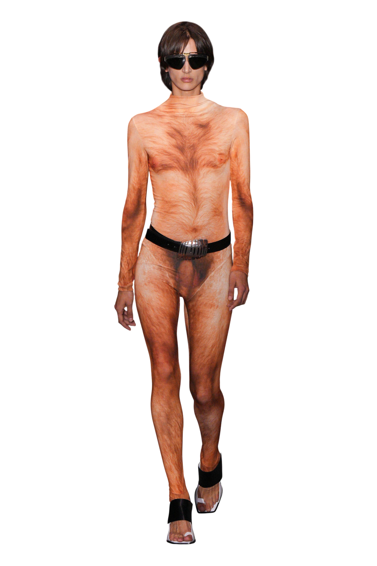 Пожалуй, самыми виральными вещами первой коллекции Дюрана Лантинка для Jean Paul Gaultier стали кэтсьюты, бадлоны и боа с очертаниями голых тел, густо покрытых волосами. Но никто, честно говоря, так и не понял — а что это было? «Модный эквивалент непрошеного нюдса», — отвечает Ванесса Фридман. «Дюран знает, как свести наши либидо с ума», — предлагает свой вариант Эдвард Бьюкенен. «Я бы тоже заплакала», — ехидно подмечает Елизавета Буйнова в ответ на пост @stylenotcom о плачущем в финале шоу Жан-Поле Готье — в обнимку с Лантинком.