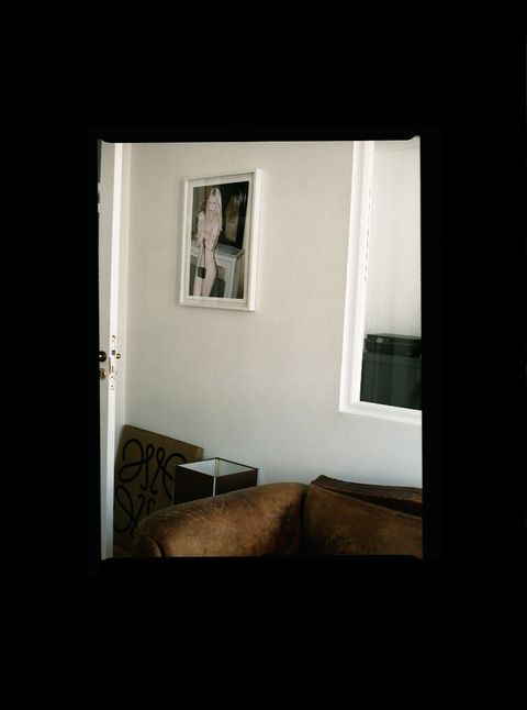 Кожаный диван достался Люсьену от прошлых обитателей офиса – модельного агентства Women Management