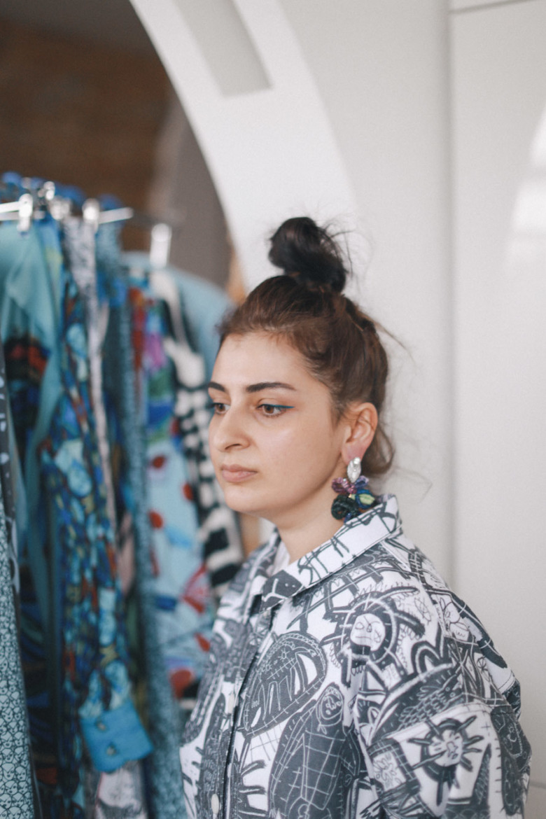 Я сама постоянно надеваю черное или белое, но из-за того, что я армянка, я очень люблю яркие цвета и яркие оттенки. Я хочу сохранить какой-то арт в своей одежде, поэтому, если я делаю классический крой, нужно быть смелее, добавлять цвет: я очень люблю яркий синий, желтый. У меня одно время даже кончики волос были синими — думаю, скоро верну.