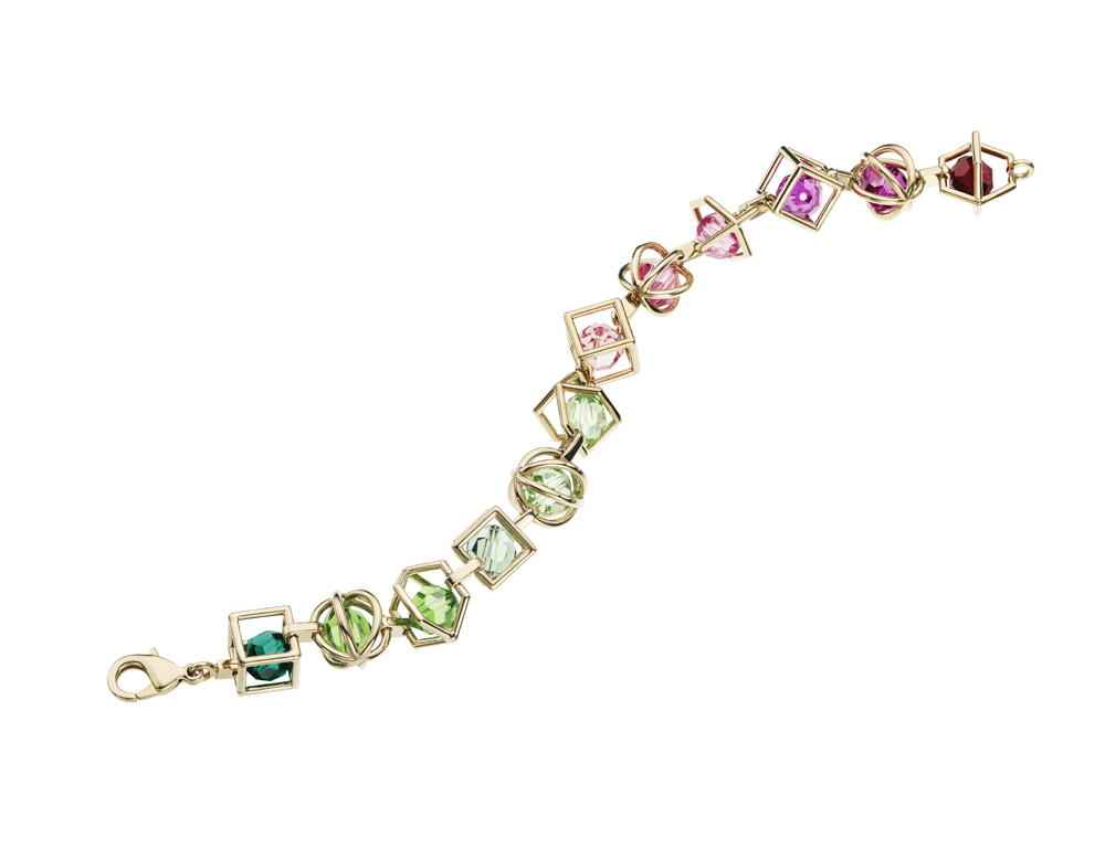 Это способ очистить мою палитру. Единственное исключение — крупные серьги с разноцветными камнями. Swarovski — одна из моих любимых марок. Поэтому, когда мне предложили сделать ювелирные украшения для них, я с радостью согласилась. Мне хотелось посмотреть на украшения глазами ребенка — отсюда кристаллы в цветах радуги и геометричные формы — сфера, шар, цилиндр, куб, пирамида. Только когда в студию пришел готовый результат, я поняла, как идеально эти украшения подходят для моей весенне-летней коллекции о детстве.