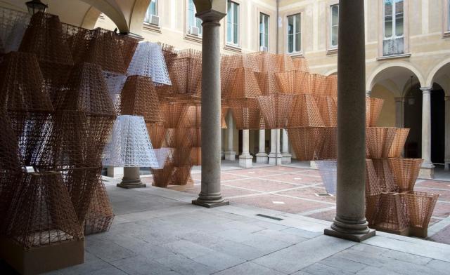 Во дворце Сербеллони развернулась по-настоящему большая выставка Objets Nomades — серии предметов, которую LV ежегодно представляет в Милане и Майами. Здесь много мебели братьев Капане; но, на мой взгляд, она все-таки на любителя. В то же время сама презентация впечатляет — например, во дворе этого палаццо разместился модульный павильон архитектора Сигэру Бана, сделанный из переработанной бумаги.